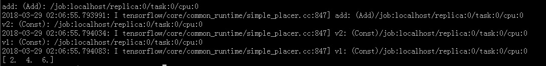ConfigProto() 中參數(shù) log_device_placement=True 會打印出執(zhí)行操作所用的設備,以上輸出: