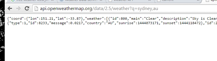 http://api.openweathermap.org/data/2.5/weather?q=sydney,au他會自動生成一個Json格式的結(jié)果。