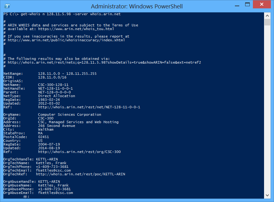 # get-whois n 128.11.5.98 -server whois.arin.net