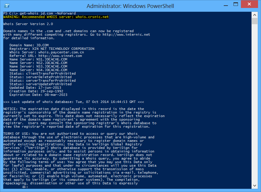 而whois信息通常是保存在各級域名注冊機(jī)構(gòu)中,平常我們要查詢whois信息都是通過godaddy、name.com、萬網(wǎng)、新網(wǎng)等域名注冊商網(wǎng)站通過查詢頁面提交域名進(jìn)行查詢,既慢又不能批量查詢,太費勁了,這里我就把我珍藏很久的一個PS function貢獻(xiàn)給大家,這個腳本支持140多種后綴的域名進(jìn)行查詢,尤其是一些生僻的域,找一個能支持這個域注冊的注冊商就不容易了,現(xiàn)在你不需要再為這個事情發(fā)愁了。