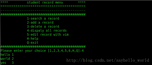 echo "**** student record menu ****"