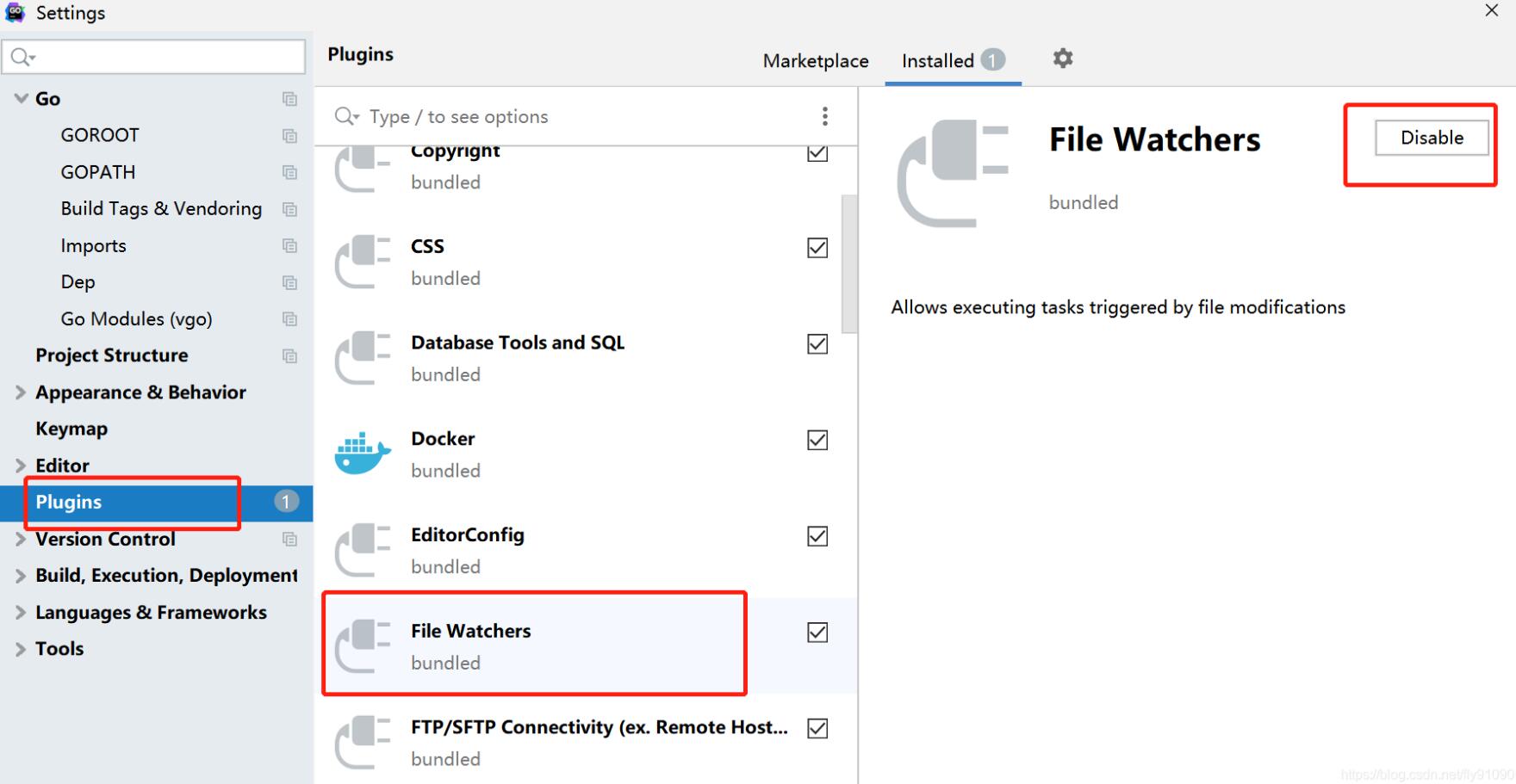 在最新版的GoLand(2019.3)中,是通過File Watchers插件來實現(xiàn)此功能的。