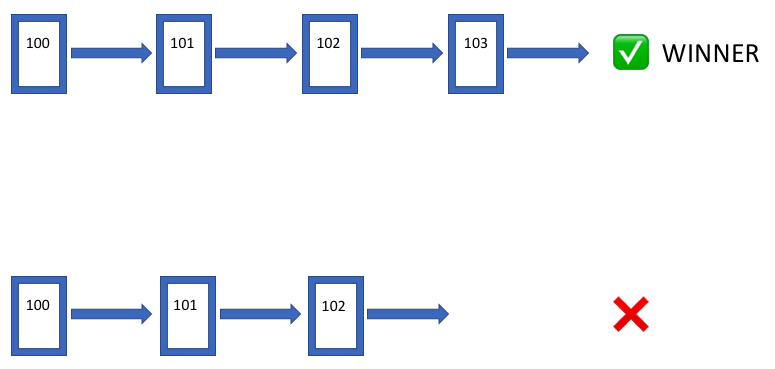 除了校驗塊以外,我們還會遇到一個問題:兩個節(jié)點都生成塊并添加到各自的鏈上,那我們應(yīng)該以誰為準(zhǔn)?這里的細(xì)節(jié)我們留到下一篇文章,這里先讓我們記住一個原則:始終選擇最長的鏈: