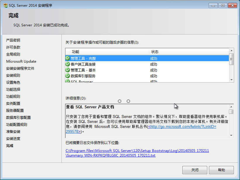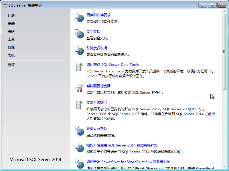 21、當(dāng)我們看到 SQL Server 2014 的各個(gè)功能選項(xiàng)窗口,就說(shuō)明我們已經(jīng)的 SQL Server 2014 就安裝成功了。