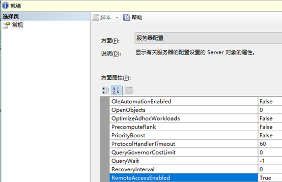 在SSMS,服務(wù)器用戶名下右鍵 方面—服務(wù)器配置——RemoteAccessEnabled選為true