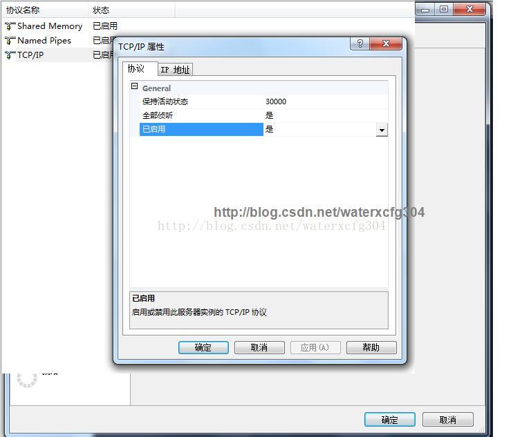 1.打開“SQL Server 配置管理器”,展開“SQL Server 網(wǎng)絡(luò)配置”,把“MSSQLSERVER 的協(xié)議”中的“TCP/IP”開啟: