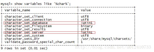 我們可以看到表的默認字符集是latin1.