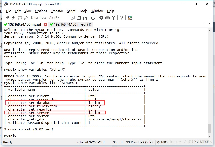 當我們跨會話查看mysql字符集都會看到都是utf8。如果你以為萬事大吉了的話,那么你就大錯特錯了。