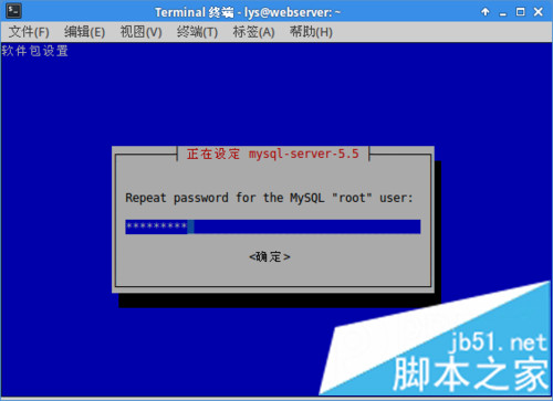 打開"終端窗口",輸入"sudo apt-get install mysql-server mysql-client"-->回車-->輸入"y"-->回車-->在"軟件包設(shè)置對(duì)話框"中輸入mysql中"root"用戶的密碼-->回車-->再輸一次密碼-->回車,安裝完成。