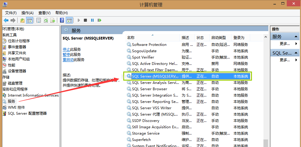如果只用這一次數(shù)據(jù)庫,就去計算機→管理→服務(wù),找到要開啟的服務(wù)SQLserver(MSSQL SERVER)去啟動就OK了。