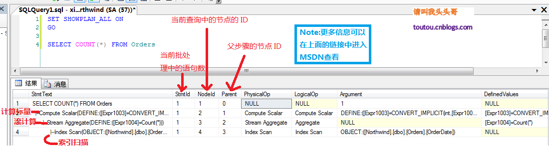 通過SET SHOWPLAN_ALL ON我們來看看COUNT()具體做了那些事情: