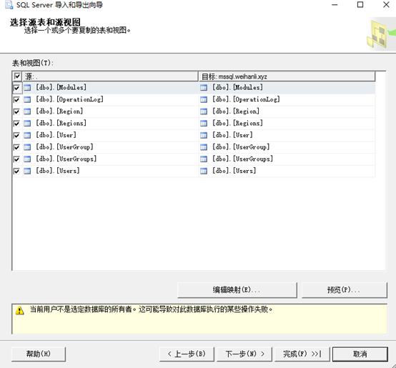 復(fù)制某些表的話選擇第一項,之后選擇要復(fù)制的表,選擇之后點擊"完成"按鈕即可開始復(fù)制數(shù)據(jù)從源數(shù)據(jù)庫到目標數(shù)據(jù)庫