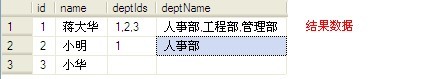 --此時已將員工表所存的IDS分別與部門相關(guān)聯(lián),下面需要將此集合中的deptName聚合成一個記錄