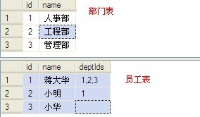 背景:在做項目時,經(jīng)常會遇到這樣的表結(jié)構(gòu)在主表的中有一列保存的是用逗號隔開ID。如,當(dāng)一個員工從屬多個部門時、當(dāng)一個項目從屬多個城市時、當(dāng)一個設(shè)備從屬多個項目時,很多人都會在員工表中加入一個deptIds VARCHAR(1000)列(本文以員工從屬多個部門為例),用以保存部門編號列表(很明顯這不符合第一范式,但很多人這樣設(shè)計了,在這篇文章中我們暫不討論在這種應(yīng)用場景下,如此設(shè)計的對與錯,有興趣的可以在回復(fù)中聊聊),然后我們在查詢列表中需要看到這個員工從屬哪些部門。