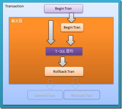 圖5.描述在觸發(fā)器中含有Begin Tran …… Commit Tran的情況,