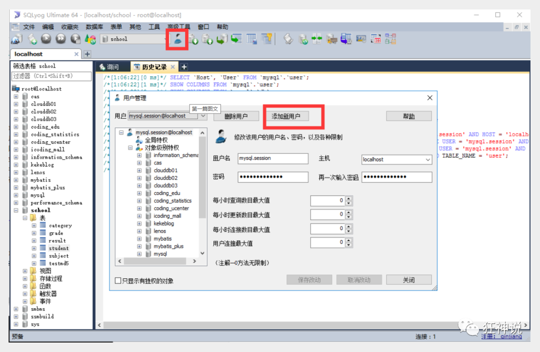 使用SQLyog 創(chuàng)建用戶,并授予權(quán)限演示