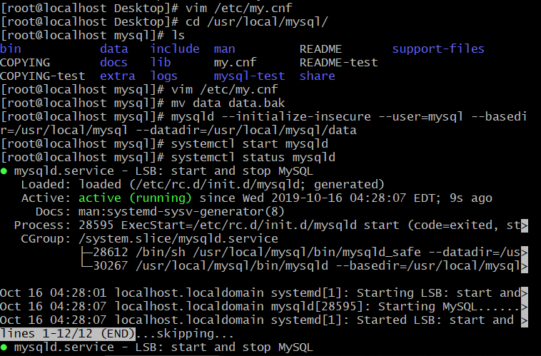 # mv /usr/local/mysql-5.7.27-aarch64 /usr/local/mysql