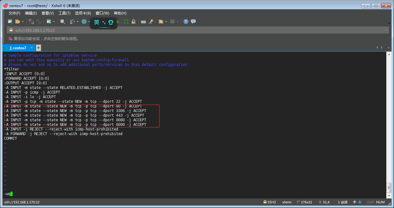 S丶通過(guò) vim /etc/sysconfig/iptables 命令編輯防火墻,添加端口