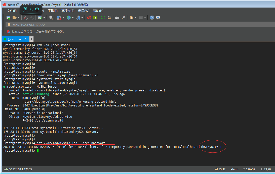 J丶通過(guò)cat /var/log/mysqld.log | grep password 查看root初始密碼