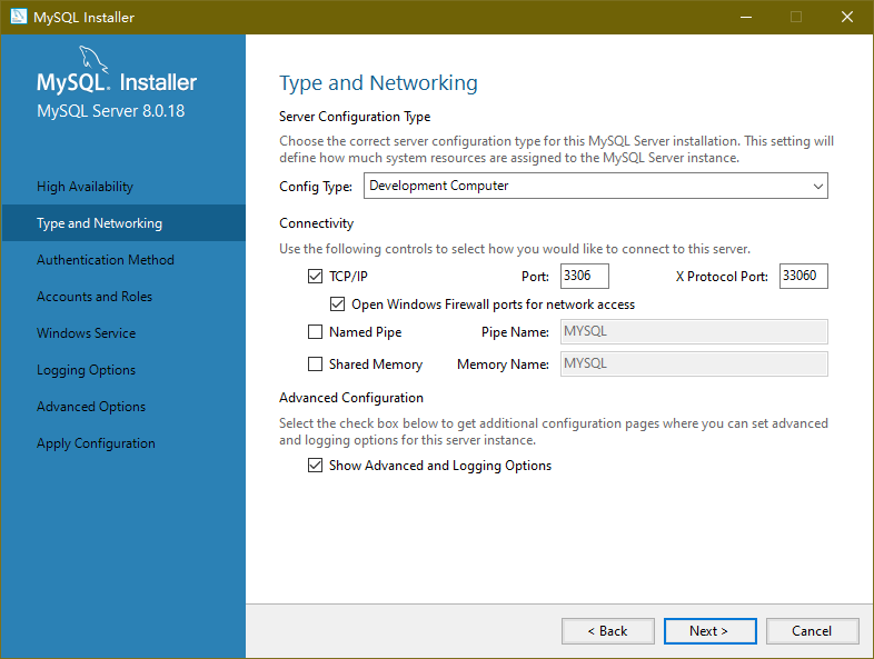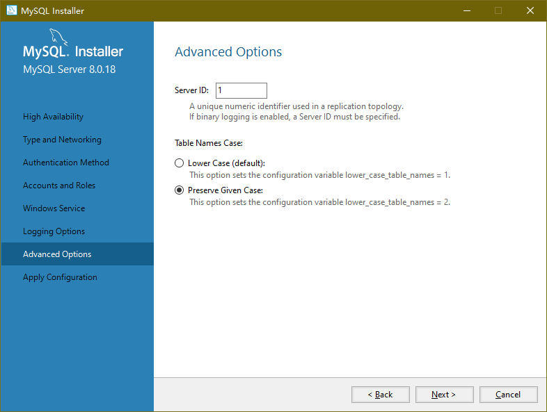 注:Open Windows Firewall ports for network access必須勾選,否則將不能遠(yuǎn)程訪問。Show Advanced and Logging Options必選勾選,否則默認(rèn)大小寫不敏感。