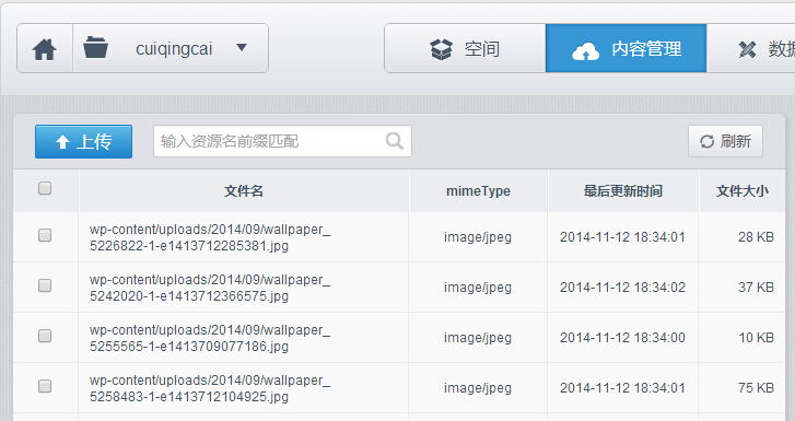 而你點(diǎn)擊七牛云存儲(chǔ)下的內(nèi)容管理,就會(huì)發(fā)現(xiàn)你的博客下的所有圖片都已經(jīng)同步到了里面。截圖如下: