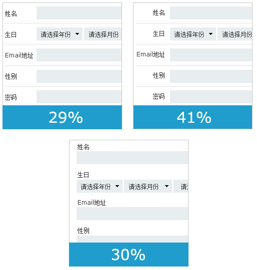 但是現(xiàn)在很多網(wǎng)站都在文本框中對文本框填寫方式做其他暗提示,這個時候必填項暗提示就相對會被限制使用的范圍了。作為必填項暗提示標(biāo)志,還有兩個致命的缺陷就是,當(dāng)我填寫完成時,我并不了解哪些是必填項哪些為非必填項,還有就是對于radiobox、checkbox、下拉框的必填來說也沒有很好的解決方案。因此,在使用必填項暗提示時,在表單形式為文本框,并且文本框內(nèi)無其他暗提示語句的時候也可以使用。