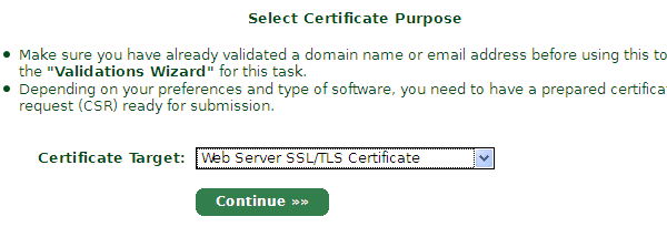 2)再到Certificates Wizard選擇要申請證書的類型