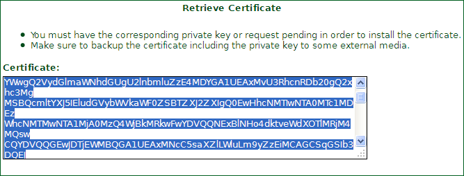 Tool Box - Retrieve Certificate,選擇申請證書的域名,將框中的內(nèi)容保存為.crt文件。比如ssl.crt。這個(gè)就是證書文件啦。