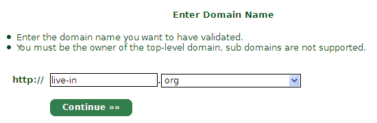 輸入要申請的域名,點(diǎn)擊Continue。