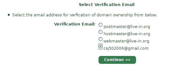 選擇一個(gè)驗(yàn)證的郵箱,有postmaster@域名、hostmaster@域名、webmaster@域名、和注冊域名時(shí)的郵箱。