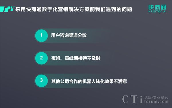 3、機(jī)器人轉(zhuǎn)化能力不足:與其他公司合作的機(jī)器人話術(shù)邏輯性較弱、機(jī)器人后臺(tái)配置不夠靈活,呈現(xiàn)的套電轉(zhuǎn)化效果不滿意。