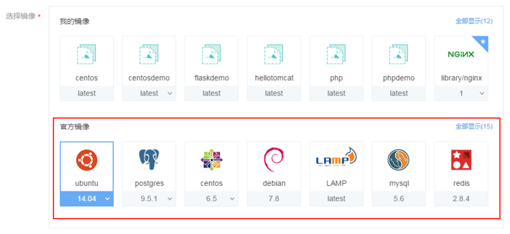 可選擇的鏡像分為「我的鏡像」和「官方鏡像」。
