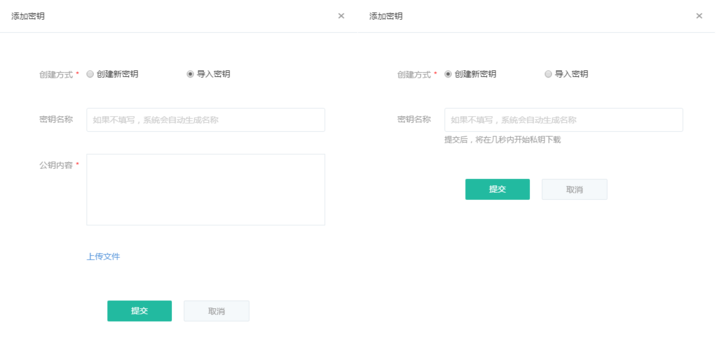 導(dǎo)入密鑰:選擇「導(dǎo)入密鑰」,上傳本地公鑰文件或填寫公鑰內(nèi)容導(dǎo)入本地密鑰。