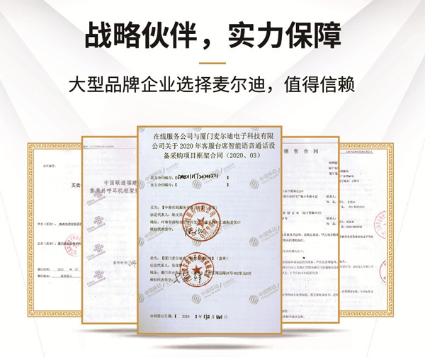 麥爾迪專(zhuān)業(yè)電聲產(chǎn)品品質(zhì)贏得中國(guó)移動(dòng)、中國(guó)聯(lián)通、中國(guó)電信、華為等大型品牌企業(yè)的信賴(lài)和支持,一直保持良好的合作,感恩您們對(duì)麥爾迪電聲產(chǎn)品及方案的肯定,產(chǎn)品實(shí)力的優(yōu)劣,只有使用者才有最真切的體驗(yàn)感受。