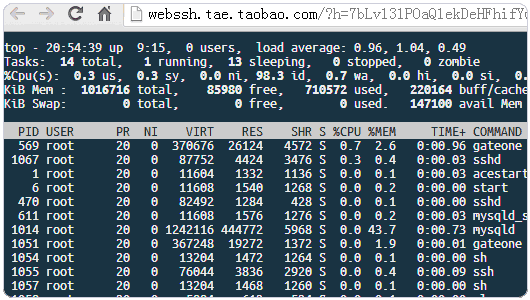6、通過TAE的WebSSH,可以幫助你在瀏覽器中像在本地使用SSH一樣來管理TAE服務器。