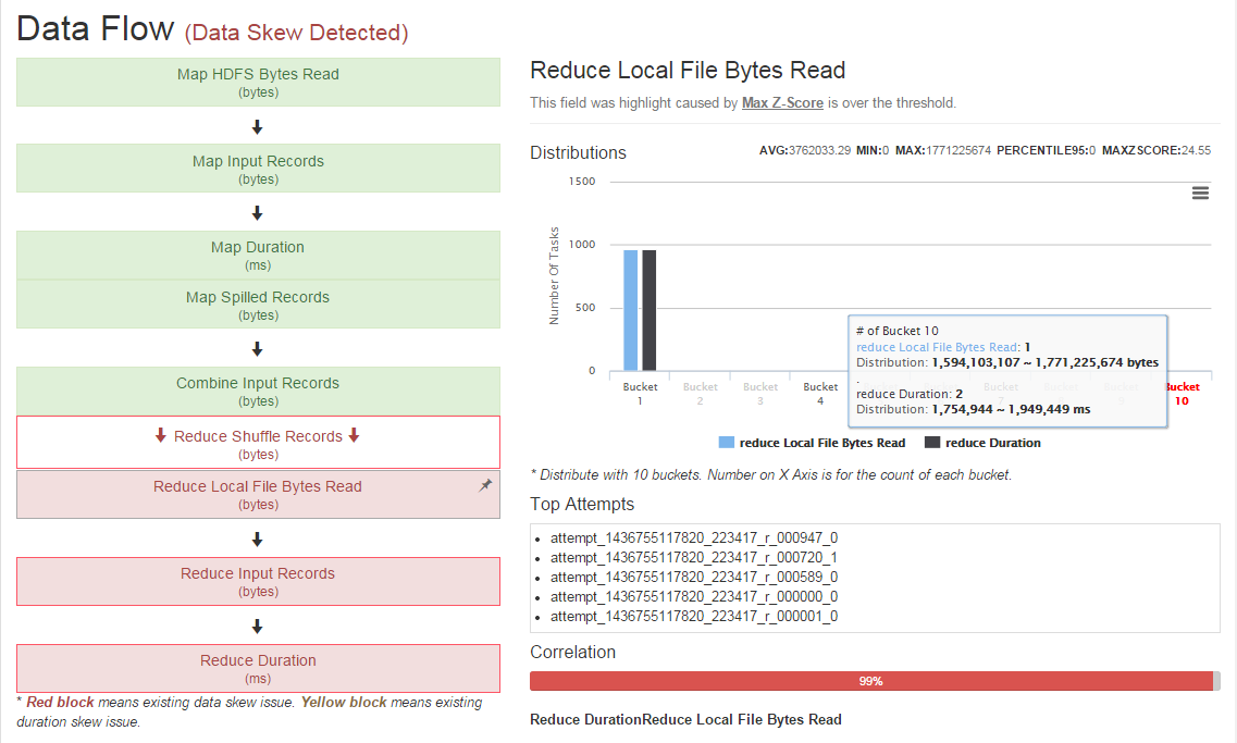 除了對日常集群指標(biāo)監(jiān)控外,Eagle集成了Job Performance Analyzer(JPA),通過實(shí)時(shí)監(jiān)控Hadoop 平臺(tái)上的作業(yè)當(dāng)前和歷史執(zhí)行狀態(tài),提供多維度不同粒度的性能分析,支持多種異常預(yù)警和性能警告,比如作業(yè)運(yùn)行時(shí)間過長、讀寫過慢、數(shù)據(jù)傾斜、失敗任務(wù)比率過多等,可有效在作業(yè)無法滿足SLA之前提供預(yù)警和性能建議。