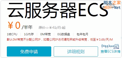 阿里云ECS其實也是類似于亞馬遜AWS那樣的云服務(wù),去年開始阿里云ECS推出了免費試用活動,不過這個免費試用活動比起亞馬遜AWS,微軟Windows Azure等這些免費試用就大大折扣了,免費的VPS沒有外網(wǎng),做做VPS體驗還差不多,如需帶寬流量則需要花錢購買。