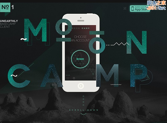 4、Moon Camp徹底把文字和圖片混合在一起。這種做法成功與否不僅取決于整體頁面的布局,色彩的搭配也是個很關(guān)鍵的因素。網(wǎng)頁色調(diào)屬于昏暗系,所以設(shè)計師選擇了星空色作為字體的顏色,與網(wǎng)站風(fēng)格吻合,文字的不規(guī)則排列也讓網(wǎng)站多了一份神秘感。