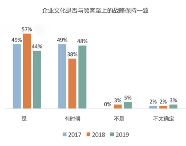 在以顧客至上為戰(zhàn)略的企業(yè)中,只有一半(44%)的公司認(rèn)為自己的企業(yè)文化是與這一戰(zhàn)略保持一致的。