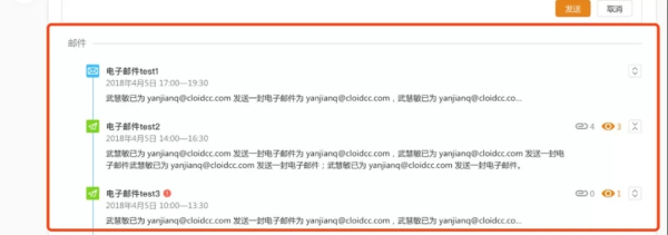 同時,系統(tǒng)保留郵件歷史,并可以隨時查看郵件歷史。在記錄的郵件Tab上,顯示郵件歷史時間軸,可清晰查看此記錄的郵件往來情況、附件、郵件追蹤情況(郵件被打開次數(shù))。