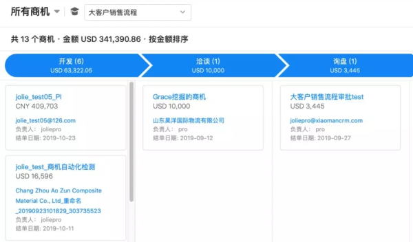 OKKI商機(jī)管理模塊截圖