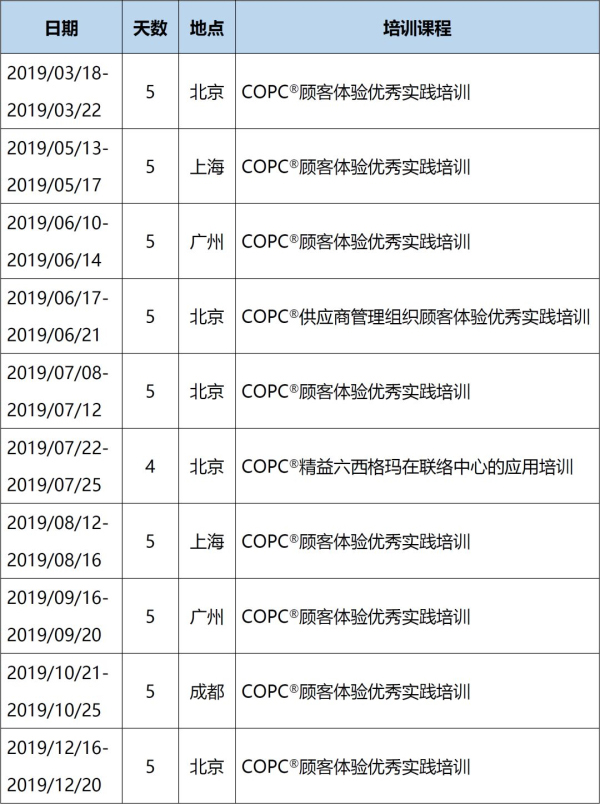 2019年COPC中國區(qū)公開課培訓(xùn)計劃