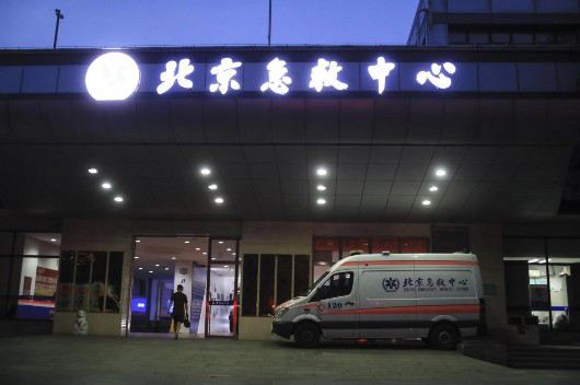 夜間,北京急救中心的大門。新京報記者浦峰攝