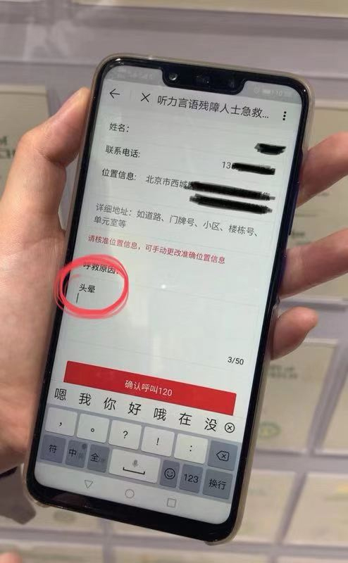 有聽力語言障礙人士現場做了演示。新京報記者在北京通APP上看到,填寫呼救原因后,一鍵“確認呼叫120”,平臺隨后跳出提示:“會有急救人員通過短信和您聯(lián)系”。
