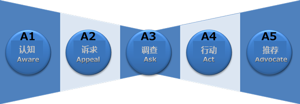 《COTRA的營銷4.0》一書中提出了體現(xiàn)網(wǎng)絡(luò)時代的消費(fèi)者旅程(Customer Journey)的“5A”概念,即A1(認(rèn)知:AWARE)、A2(訴求:APPEAL)、A3(詢問:ASK)、A4(行動:ACT)、A5(推薦:ADVOCATE)。這一概念描述了消費(fèi)的意愿不再是消費(fèi)者獨(dú)自決定的,而是會受到各種各樣的聲音的影響,由“群體意見”決定。基于此概念推出了衡量品牌價值的兩項(xiàng)新指標(biāo),即PAR(Purchase Action Ratio:購買轉(zhuǎn)化率)和BAR(Brand Advocacy Ratio:品牌推薦率)。根據(jù)這兩個指標(biāo),衡量企業(yè)品牌認(rèn)知度的標(biāo)準(zhǔn)除了傳統(tǒng)的購買轉(zhuǎn)化率,還有推薦率。