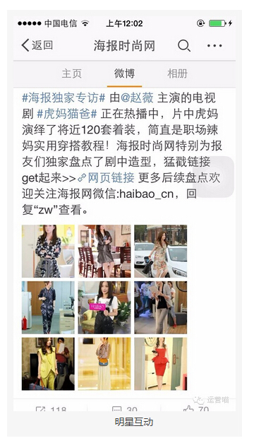 因為是媒體所以涉及到很多明星合作。我們會將合作的內(nèi)容同時微博微信發(fā)布,同時微信設(shè)置關(guān)鍵詞。微博推送時會帶上微信號,并提示關(guān)鍵詞回復(fù)。然后與明星溝通轉(zhuǎn)發(fā)。未必每次明星合作都成功,但每一次成功的分享必然帶來龐大的數(shù)據(jù)增長。