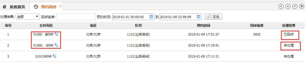 預(yù)約回呼:是當(dāng)客戶呼入時隊列遇忙等待,在隊列超時溢出后,語音將提示客戶“預(yù)約回呼請按1,我們將在座席空閑后的第一時間聯(lián)系您”。若客戶按1選擇了預(yù)約回呼,在該隊列中的所有座席前臺會實時彈出提示。