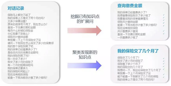 知識庫建設(shè)初期,可將已有歷史對話記錄中的用戶問題上傳語義理解引擎,引擎將問法與標(biāo)準(zhǔn)知識進(jìn)行聚類、匹配。知識加工人員只需將有效拓展問勾選添加到已有知識點(diǎn),或?qū)l(fā)現(xiàn)的新問題添加為新知識點(diǎn),來快速進(jìn)行知識庫建設(shè)。
