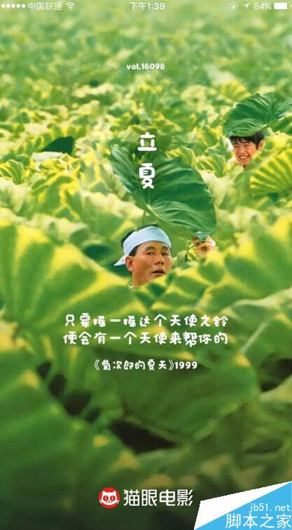 說一下自己家的產(chǎn)品。一般情況,貓眼每天都會推出一張啟動(dòng)圖,內(nèi)容是電影海報(bào)+一句話文案,負(fù)責(zé)這件事的運(yùn)營,是一個(gè)有幾千部觀影量并且很有審美追求的同學(xué)。隨便截一張今天的,下圖: