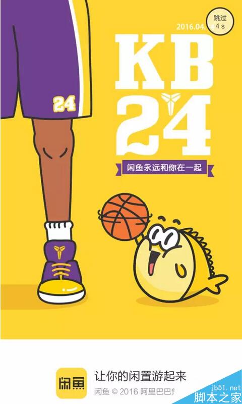 咸魚在科比告別賽當(dāng)天做的啟動(dòng)圖,文案是「永遠(yuǎn)和你在一起」。意思是雖然科比不在球場上了,但我們還在。雖說不是特別貼切,但至少把熱點(diǎn)和產(chǎn)品結(jié)合起來了,能看出運(yùn)營在這塊是有策略的。